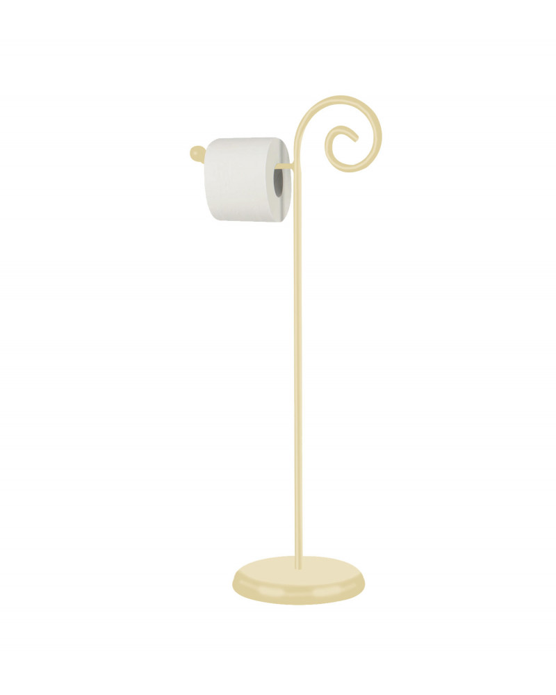 Porta carta igienica da terra Riccio in ferro, dimensioni lunghezza 24 cm, profondità 25 cm, altezza 75 cm, realizzato in Italia da Ceart. Porta scopino dallo stile classico, disponibile in cinque colori (bianco, avorio, tortora, marrone e nero).