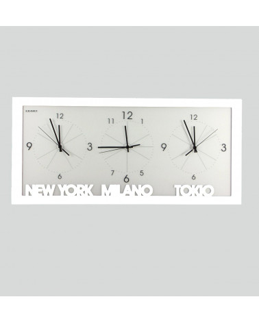 orologio da parete con fusi orari colore bianco