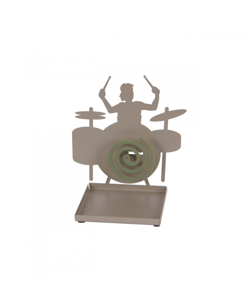 Porta zampirone in metallo dal design moderno ed originale a forma di batterista. Se cercate qualcosa di diverso rispetto al solito porta zampirone standard, questo articolo realizzato da Ceart è quello che fa per voi: un porta zampirone solido, disponibile in molti colori (nella foto in colore tortora) con una forma simpatica e diversa dal solito: un batterista di un complesso musicale intento a suonare tamburi e percussioni con le sue bacchette.